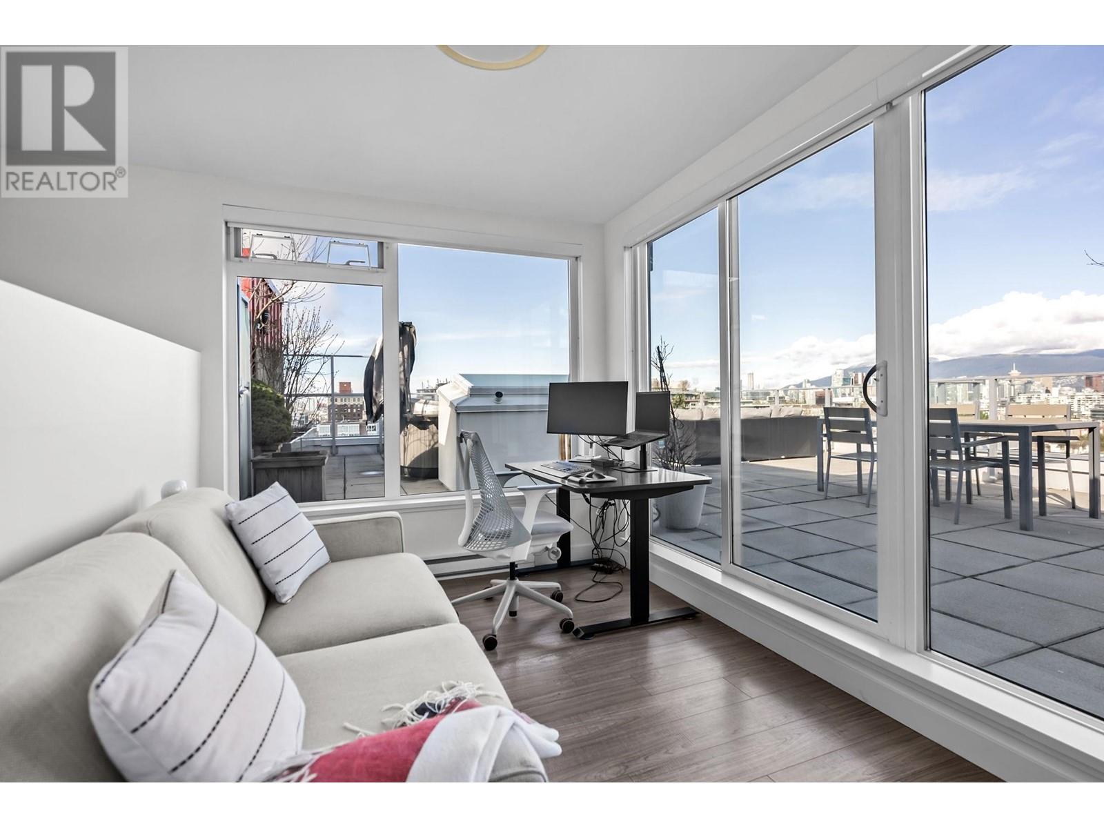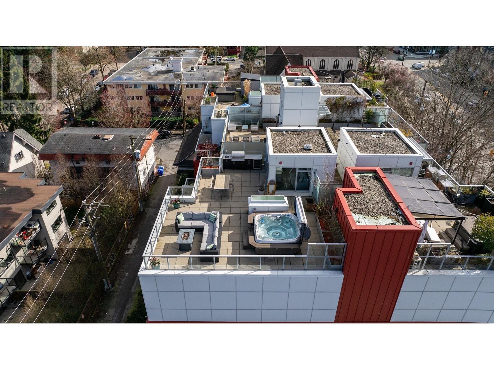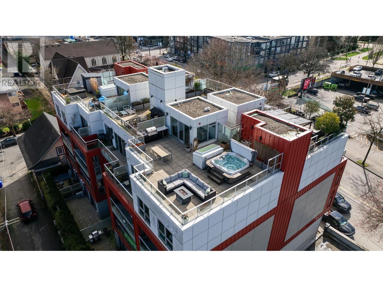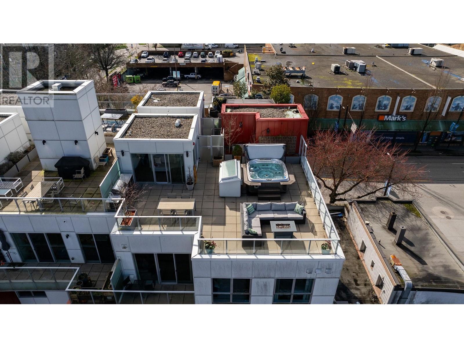 Your search for the perfect rooftop patio has ended! Presenting the stunning NW-facing PH with 850sf ROOFTOP PATIO in Mount Pleasant’s desirable ‘Synchro’ building. This 2bed+den & 2bath corner suite offers an expansive 1190sf floorplan and has plenty of eye-catching features including AC, smart home technology, 9′ ceilings, a bright skylight that allows plenty of natural light to flow through the home, and a gourmet kitchen that comes equipped with quartz countertops, large island with seating, gas cooktop, and Blomberg & Fultop s/s and integrated appliances. Situated on the quiet side of the building with peaceful views of Dude Chilling Park through to Downtown Vancouver and the North Shore Mountains which can be enjoyed from every angle of the home. Now to the best part – the rooftop deck that you have been dreaming of. Outdoor BBQ & kitchen, dining area, hot tub, seating area with fire pit, garden, storage – you can fit it all! Don’t let this one pass you by! Open House: Sunday, May 25th from 2-4pm. (id:62103)
