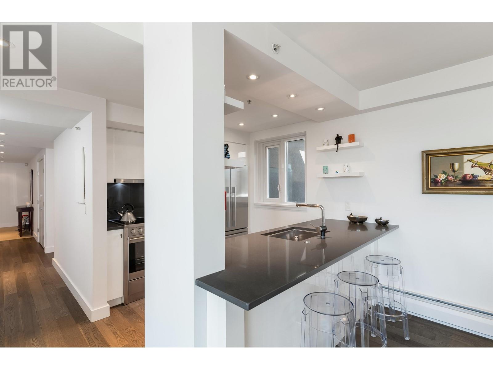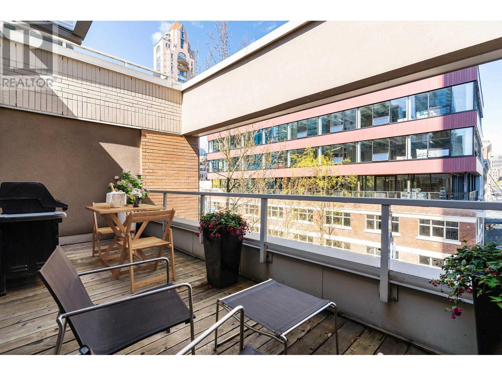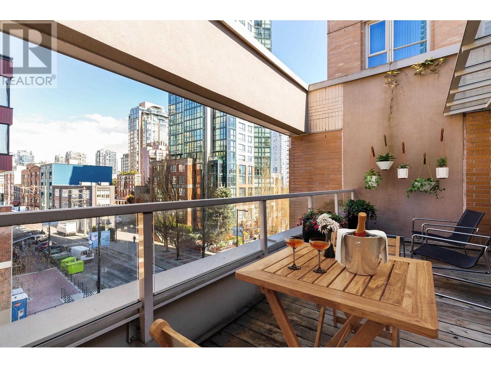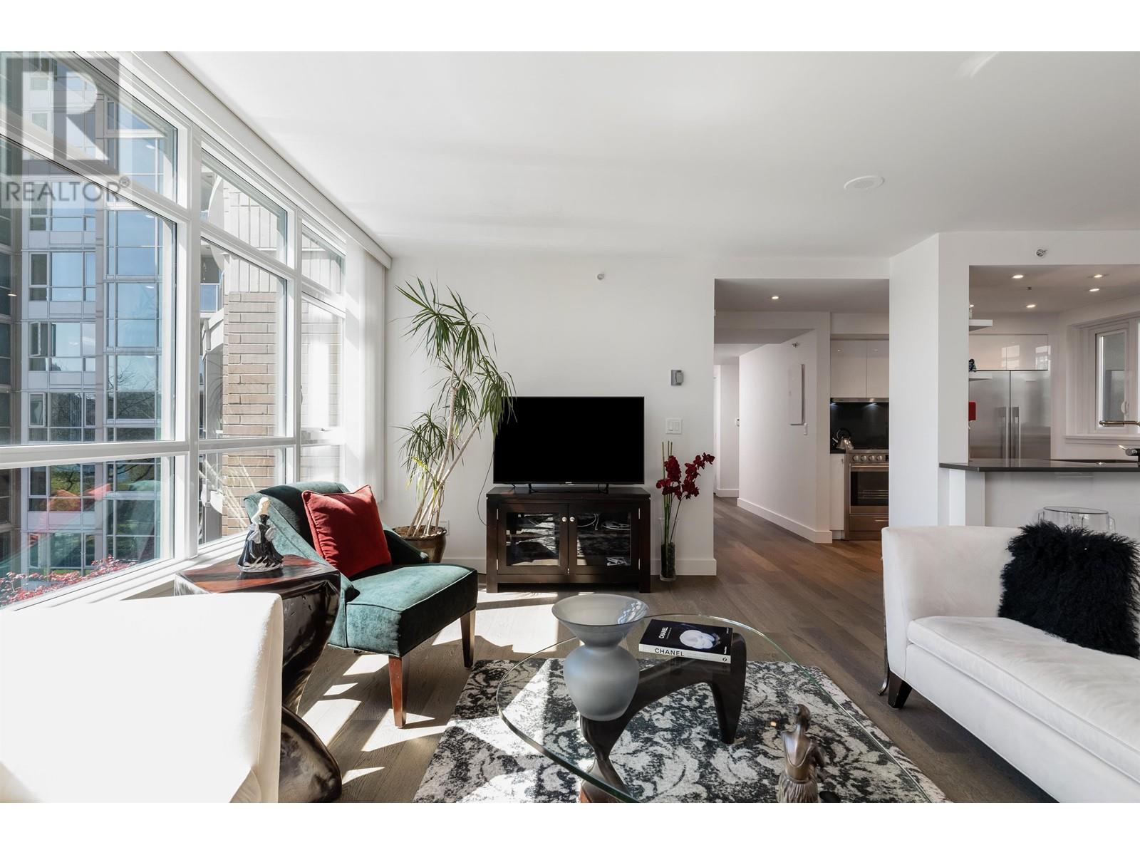 Spectacular executive 2 bed & 2 bath + flex home at Governor´s Villa. Standout feat. incld: large uncovered patio, top floor placement within the podium & 2 directions of views flanking either side of the home – overlooking historic Yaletown & manicured gardens against a False Creek backdrop. Interiors: Kitchen feat. high gloss millwork, polished quartz counters, high-end appliances. Bonus feat: recessed lighting, engineered H/W floors, custom built-ins. Flex with glass slider used as custom pantry (could be an office). Generous amenities: exercise room, indoor pool & sauna. Comes with secured prkg & storage. Very proactive building – rain screen in 2011, re-piping in 2017, new elevators 2021 & more. Steps to seawall, restaurants, cafes & Canada Line. Pet friendly! OPEN HOUSE SAT MAY 31st 2-4 (id:62103)