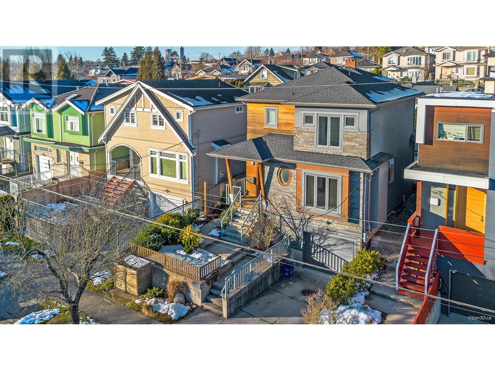 This contemporary home offers a unique combination of a modern design and functional space design with a practical layout. Truly modern standard home with A/C, HRV and in-floor radiant heat throughout. This 2312 sq-ft house has an open main floor with high ceilings, sleek finishes, and clear view of Fraser River including Richmond. Extra high main floor ceiling and 9ft ceiling upper floor makes great use of space with numerous storage considerations. A block away from Fraser Street, quiet yet only a minute to the bus stop. Close to Pierre Elliot Primary School and John Oliver Secondary or Winston Churchill for French Immersion. Don´t miss this opportunity! Open House May 25th Sunday 2-4pm. (id:62103)