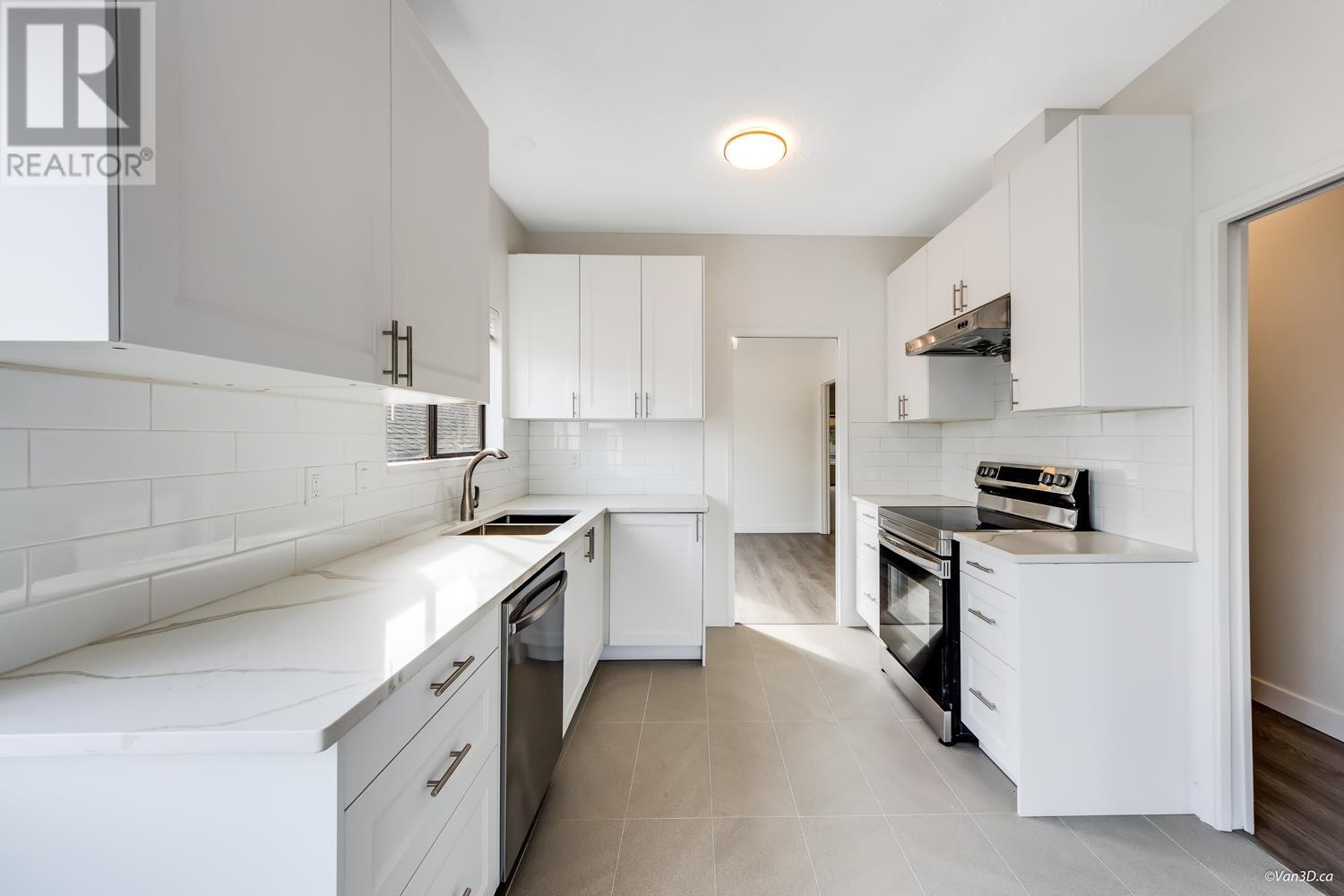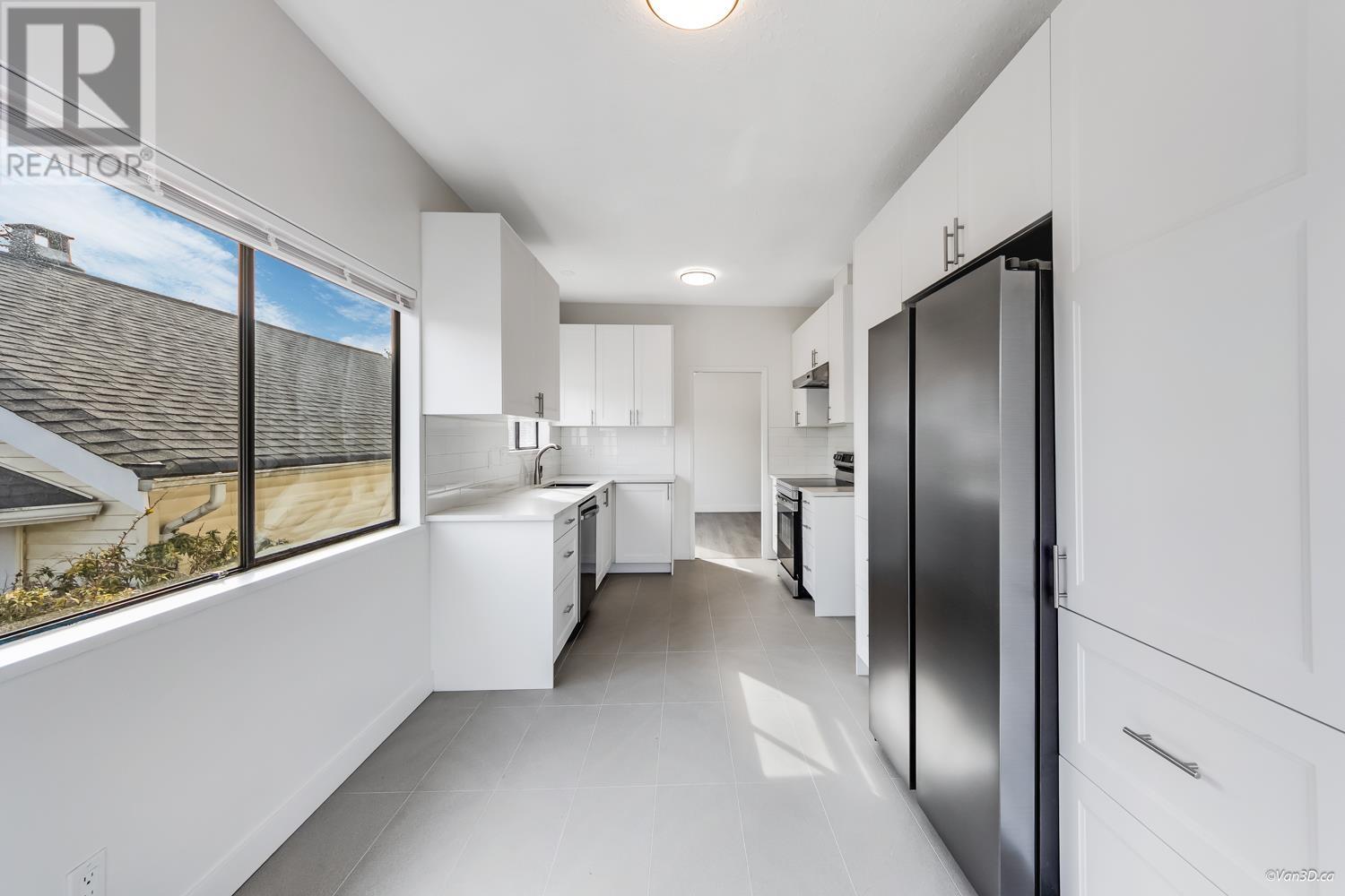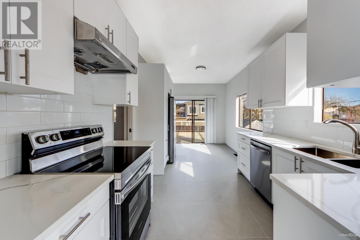 Newly Renovated West of Main! This spacious 2700+ sqft Vancouver Special, near Quebec & East 43rd, offers a modern upstairs with 9 ft ceilings, 3 bedrooms, new kitchen with soft-close cabinets, new appliances, and a large eating area leading to a 200+ sqft deck. 2 new baths, new flooring, mostly updated light fixtures, and a neutral color palette. The garden-level self-contained unit has 4 bedrooms, 4pc bath, and shared laundry. Features include a 2014 high-efficiency furnace and 2024 hot water tank. Ample parking with covered carport, open parking, and garden space. Steps to Van Horne Elementary, Eric Hamber High, Langara, Skytrain, and the new Oakridge Mall. (id:62103)