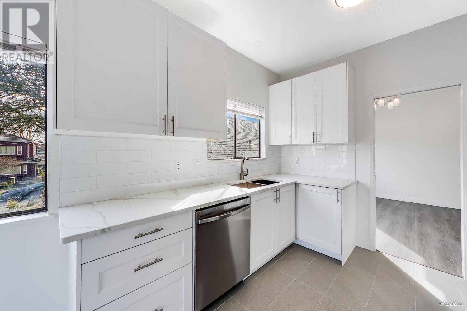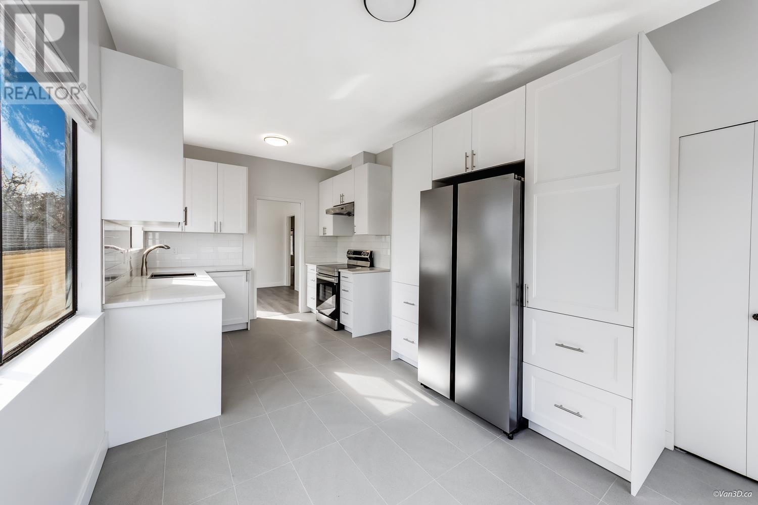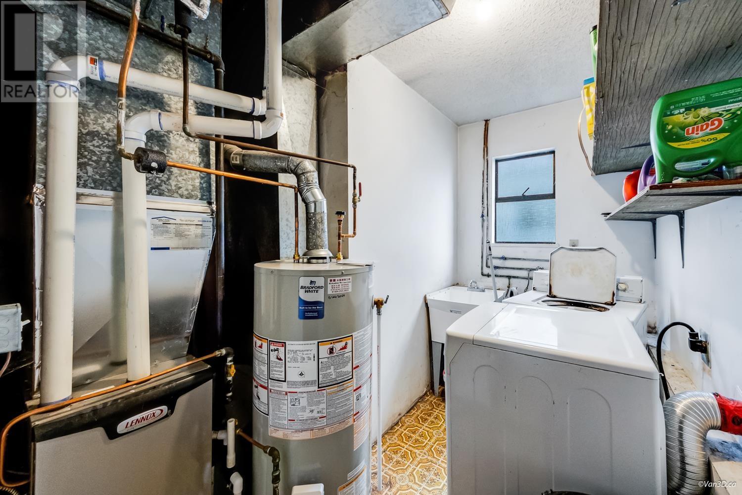 Newly Renovated West of Main! This spacious 2700+ sqft Vancouver Special, near Quebec & East 43rd, offers a modern upstairs with 9 ft ceilings, 3 bedrooms, new kitchen with soft-close cabinets, new appliances, and a large eating area leading to a 200+ sqft deck. 2 new baths, new flooring, mostly updated light fixtures, and a neutral color palette. The garden-level self-contained unit has 4 bedrooms, 4pc bath, and shared laundry. Features include a 2014 high-efficiency furnace and 2024 hot water tank. Ample parking with covered carport, open parking, and garden space. Steps to Van Horne Elementary, Eric Hamber High, Langara, Skytrain, and the new Oakridge Mall. (id:62103)