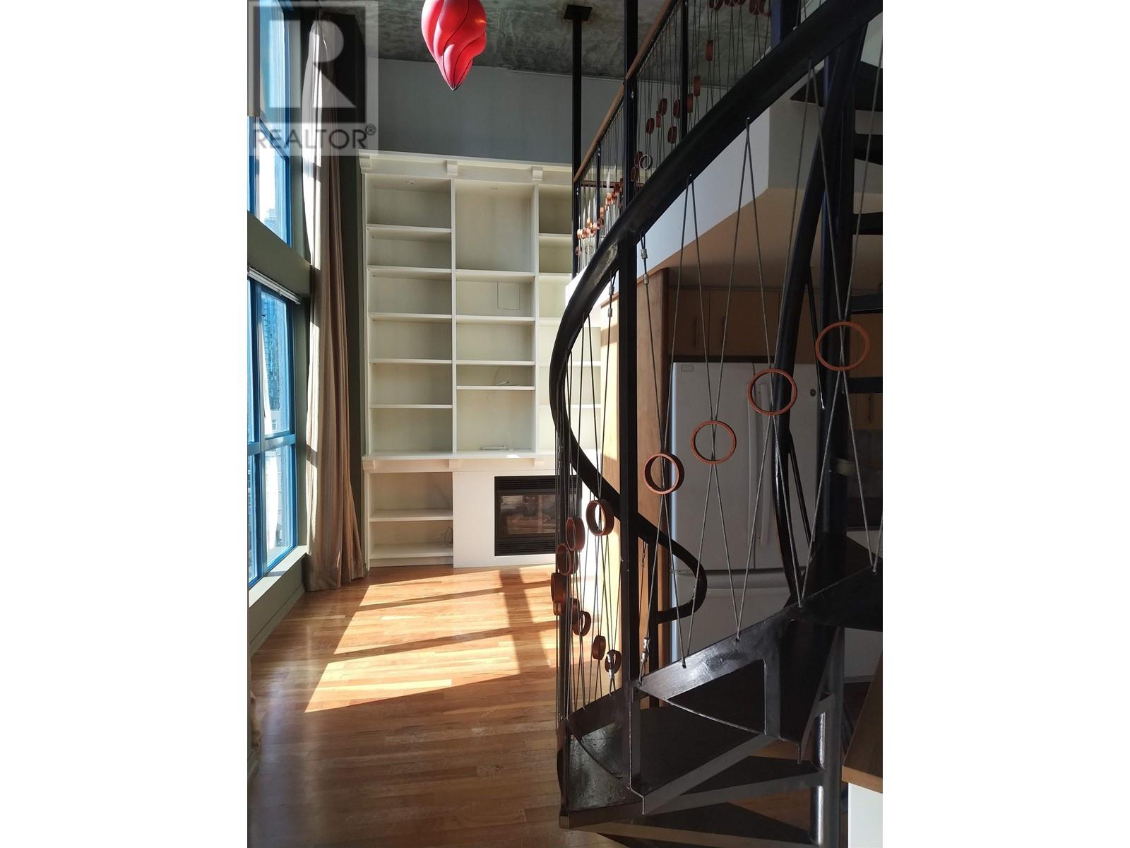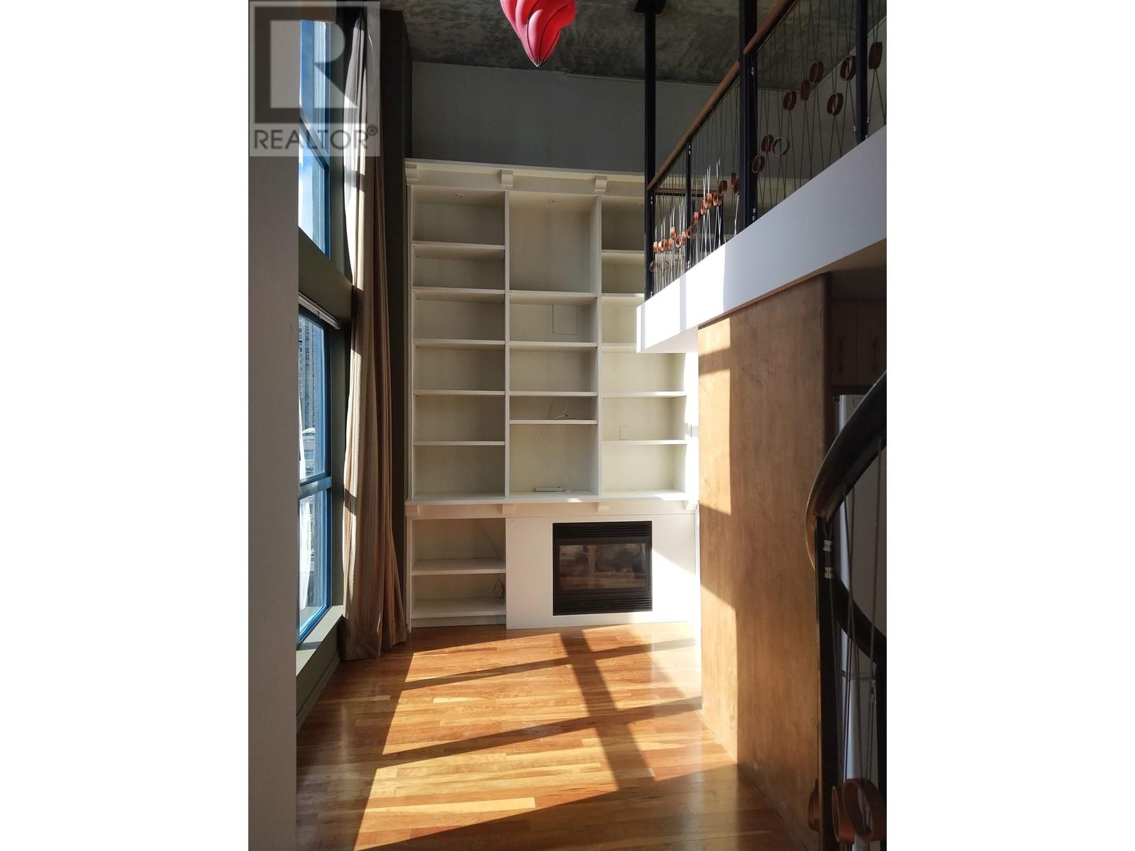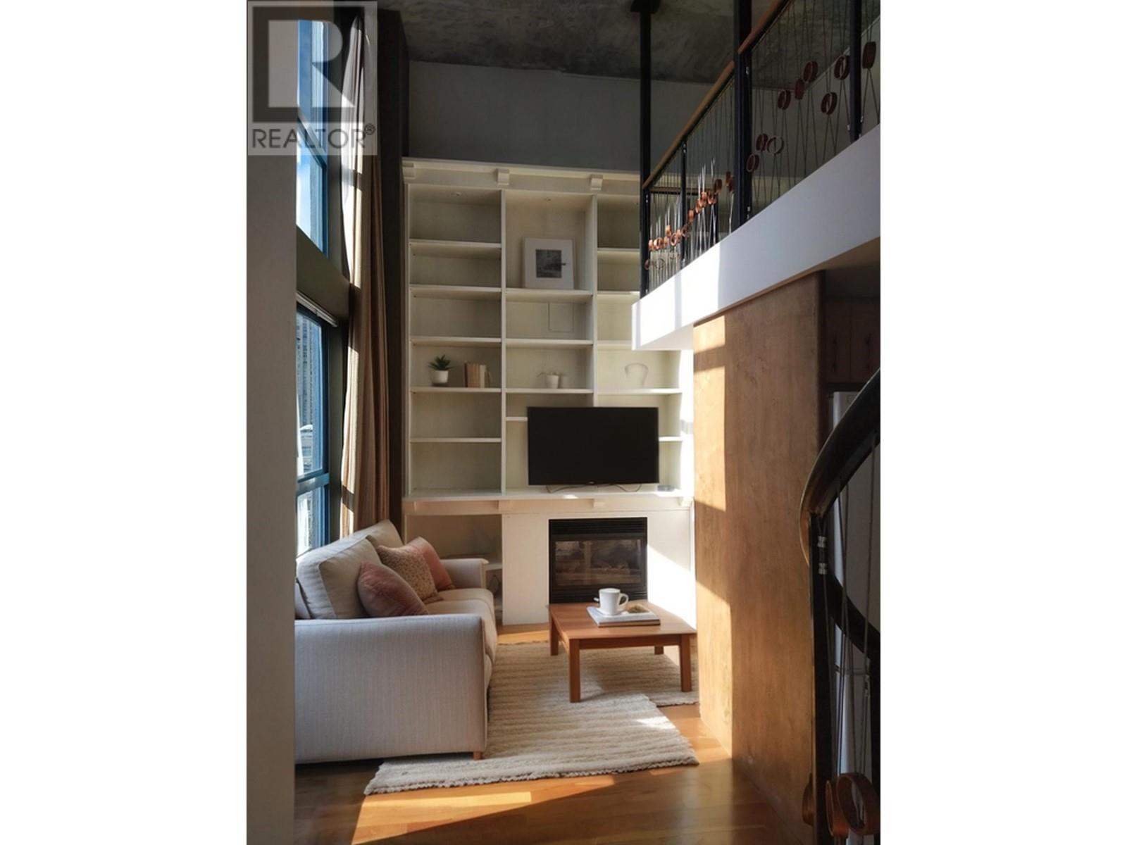 Love loft living? This funky Yaletown loft is anything but average! Featuring soaring 16ft concrete ceilings, custom built-in cabinetry, hardwood flooring, a cozy gas fireplace, and a cool spiral rod iron staircase. The oversized lofted bedroom fits your king bed and bonus south-facing reading nook or office area bring in tons of natural light, perfect for focus and relaxation. The kitchen pops with a butcher block island, marble tile backsplash, gas cooktop, modern white appliance package, and insuite laundry. Funky lighting and a statement chandelier complete the vibe. Storage locker available & parking available for rent. Enjoy vibrant Yaletown living with every convenience at your doorstep – You´re going to LOVE this space! Open House: Saturday, June 14th, 2-4pm. (id:62103)