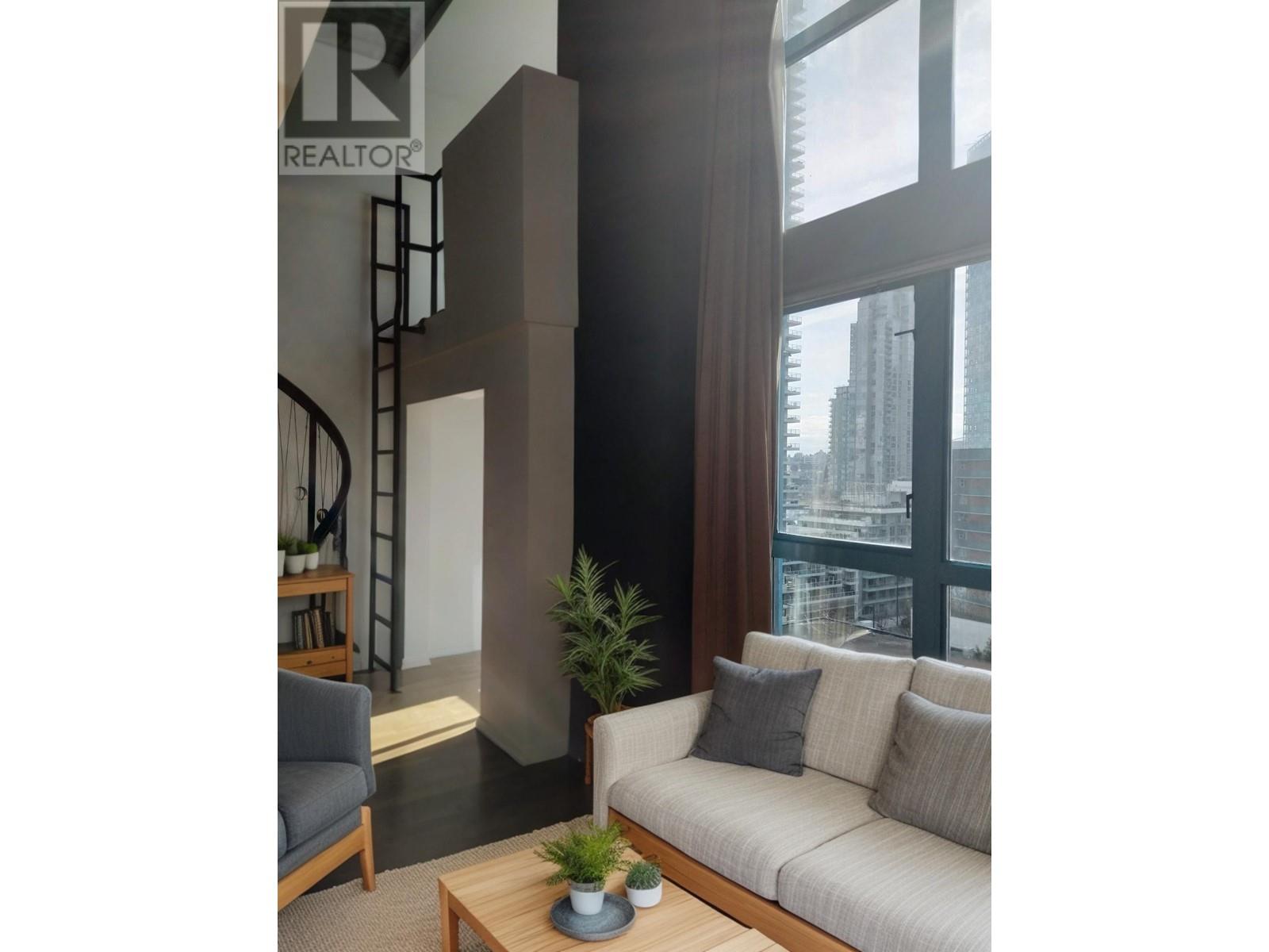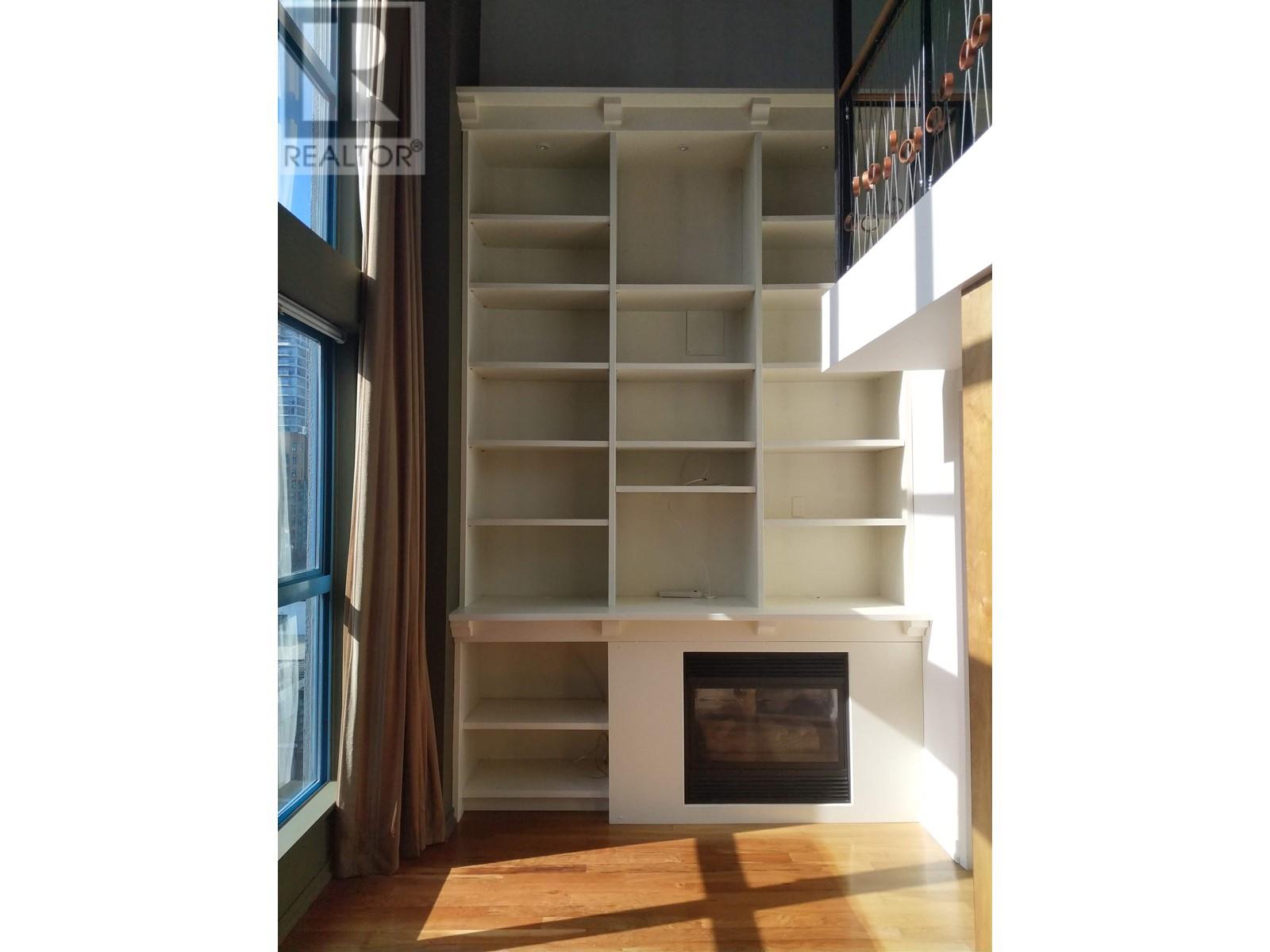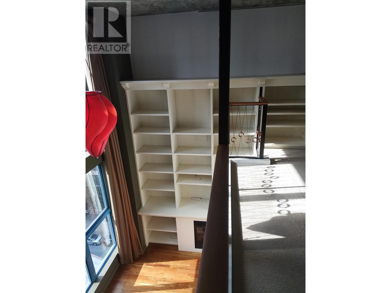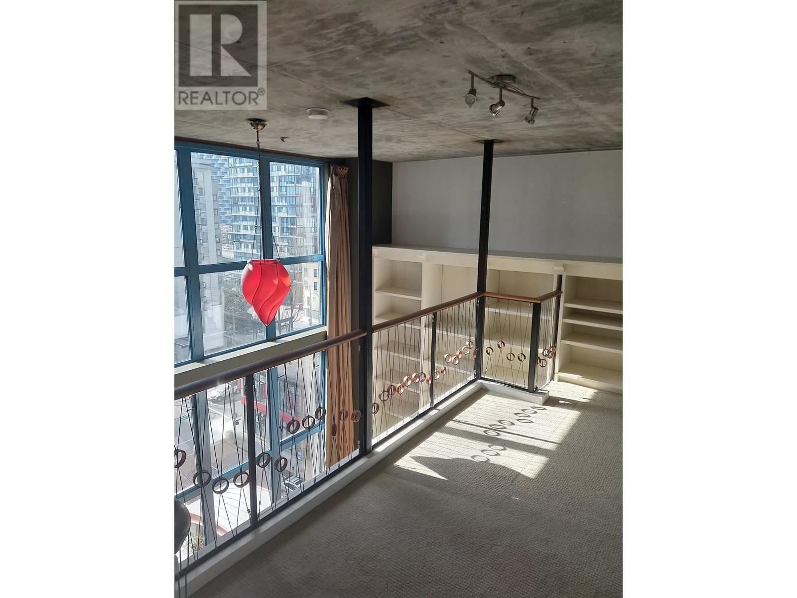 Love loft living? This funky Yaletown loft is anything but average! Featuring soaring 16ft concrete ceilings, custom built-in cabinetry, hardwood flooring, a cozy gas fireplace, and a cool spiral rod iron staircase. The oversized lofted bedroom fits your king bed and bonus south-facing reading nook or office area bring in tons of natural light, perfect for focus and relaxation. The kitchen pops with a butcher block island, marble tile backsplash, gas cooktop, modern white appliance package, and insuite laundry. Funky lighting and a statement chandelier complete the vibe. Storage locker available & parking available for rent. Enjoy vibrant Yaletown living with every convenience at your doorstep – You´re going to LOVE this space! Open House: Saturday, June 14th, 2-4pm. (id:62103)