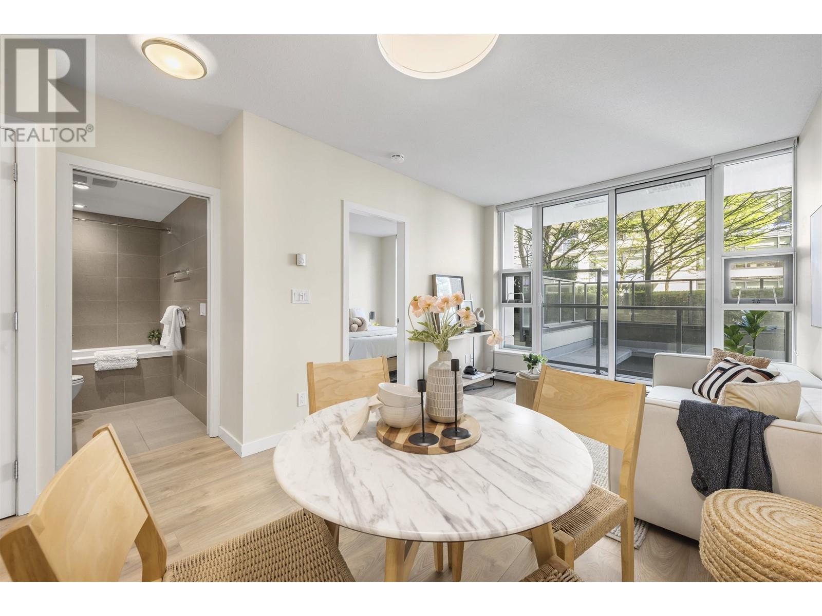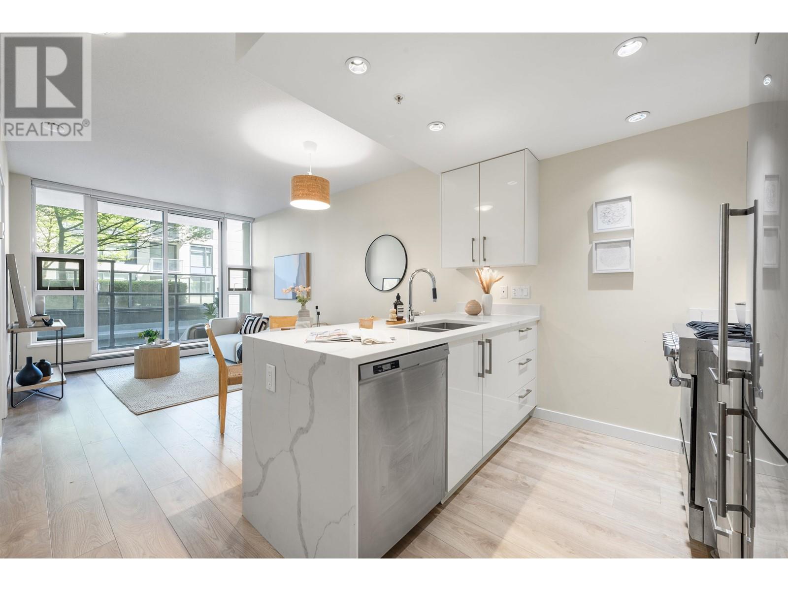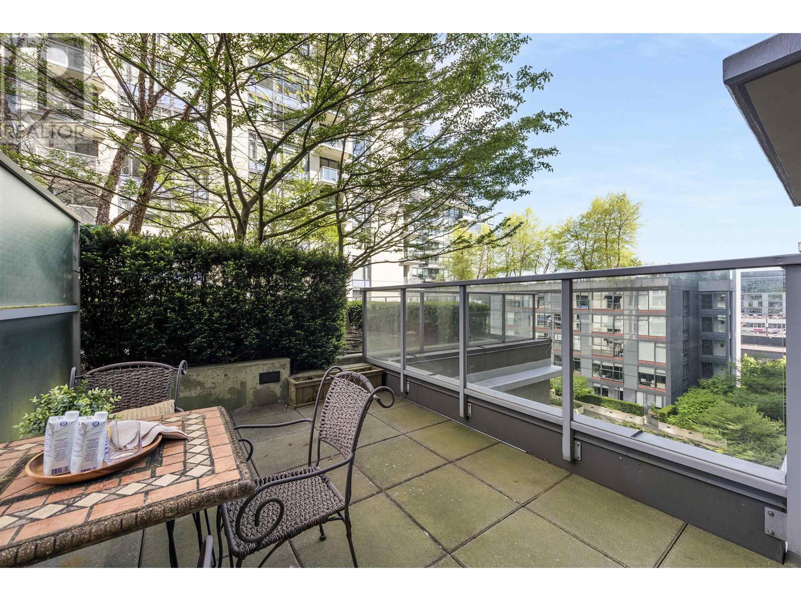 This gorgeous and bright 1 Bedroom and 1 Bathroom unit at Wall Centre False Creek, located on the west side of Olympic Village, just a few steps from the seawall at False Creek. This unit offers a professional kitchen with high-end Viking and Blomberg Stainless Steel appliances alongside stone countertops. Walk outside to the covered 42 SQFT balcony that extends further to an additional HUGE private 154 SQFT patio – only 1 of 4 in the building! The outdoor space overlooks the private and quiet courtyard gardens. 1 parking and 1 storage included. Located only a few minutes from Downtown Vancouver, with access to amenities and shops at Olympic Village, transit, Aquabus, Science World, and the Cambie Corridor only a short walk away! (id:62103)