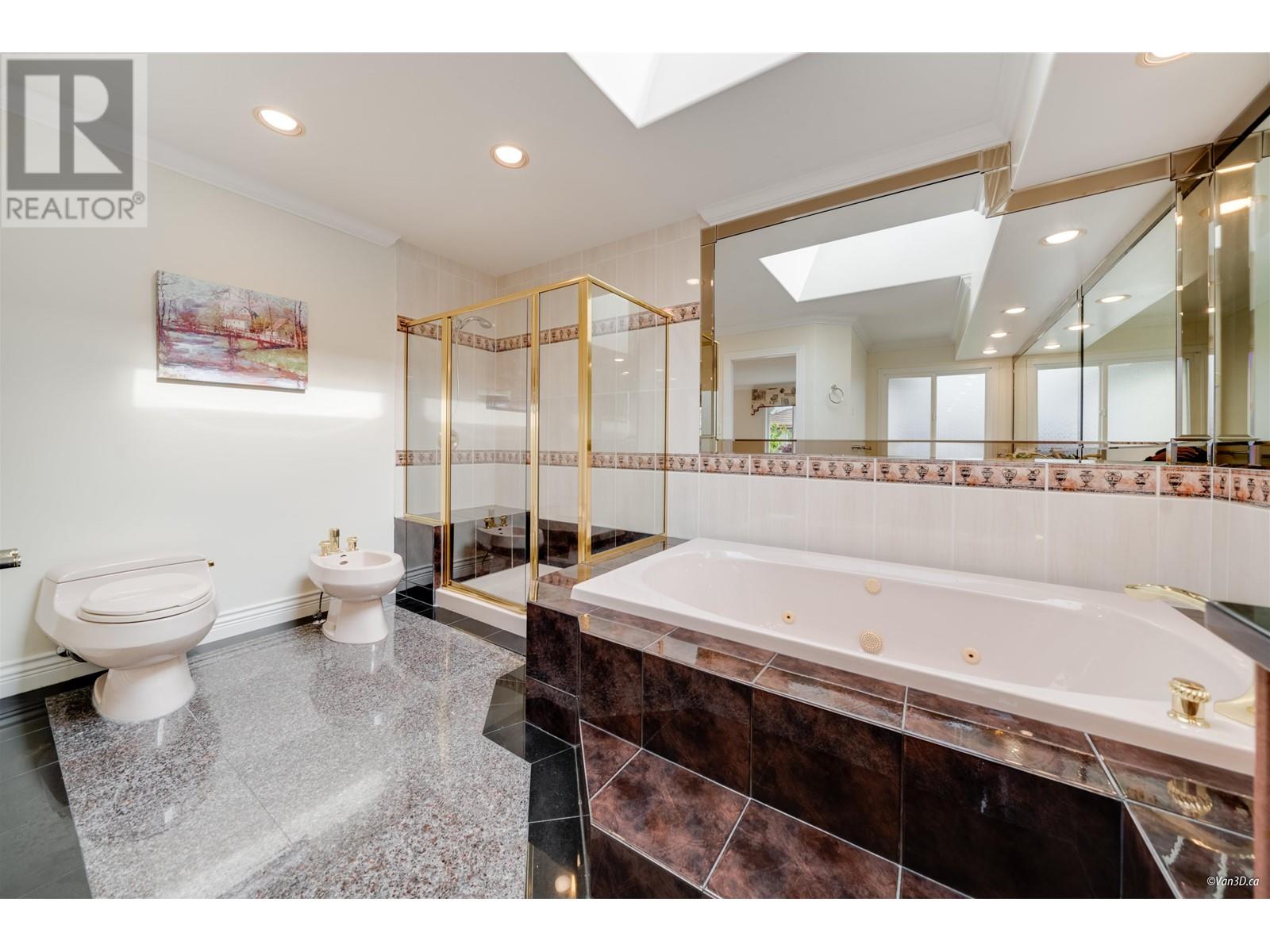 Indulge in luxury with this meticulously crafted 5 bdrms, 6 bath, SOUTH-facing home boasting a generous floor plan & a spacious lot of 8,817 SF. The executive family residence showcases exquisite design elements–HRV, Brand New Boiler/HW Tank; Granite Foyer & Countertops; Crown Molding; Maple Cabinets and Railings. Enjoy ample living spaces with 16′ high ceiling in Foyer & L/R, Vaulted ceiling in F/R. Notable features include Master bdrm has 2 Walk-in Closets, Male’s urinal; All Ensuite Bdrms; 4 Skylights, Radiant Heat, Abundant 2 Pantry/Storage, Tile Roof, Triple Garage and Japanese character’s Garden. This home ensures daily convenience with proximity to Transit, Richmond High School, Blundell Mall, Minoru Community Centre. Seize the chance to own. (id:62103)