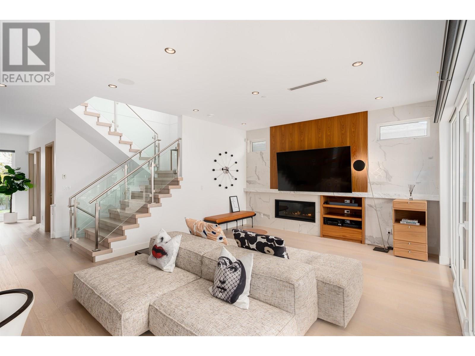 Meticulously maintained luxury home on a beautiful cherry blossom-lined street in Vancouver Westside. This like-new home boasts a modern architectural design, refined with high-end finishes and an airy open-concept floorplan. Soaring ceilings and expansive windows fill the space with lots of nature lights. Features top-of-the-line Gaggenau appliances, high end Bocci, Flos Italian lighting, motorized blinds, spacious rooms, and master bedroom offers stunning city views. The basement is a family paradise with a large recreational room, media room, and in-law suite ideal for multigenerational living. Bonus laneway house provides excellent rental income to help offset yearly expenses. Great reputable Jamieson Elementary, and steps to Churchill Secondary with IB program, Canada Line, and shopping. A rare blend of luxury, comfort, and convenience in a prime location. Must see. (id:62103)