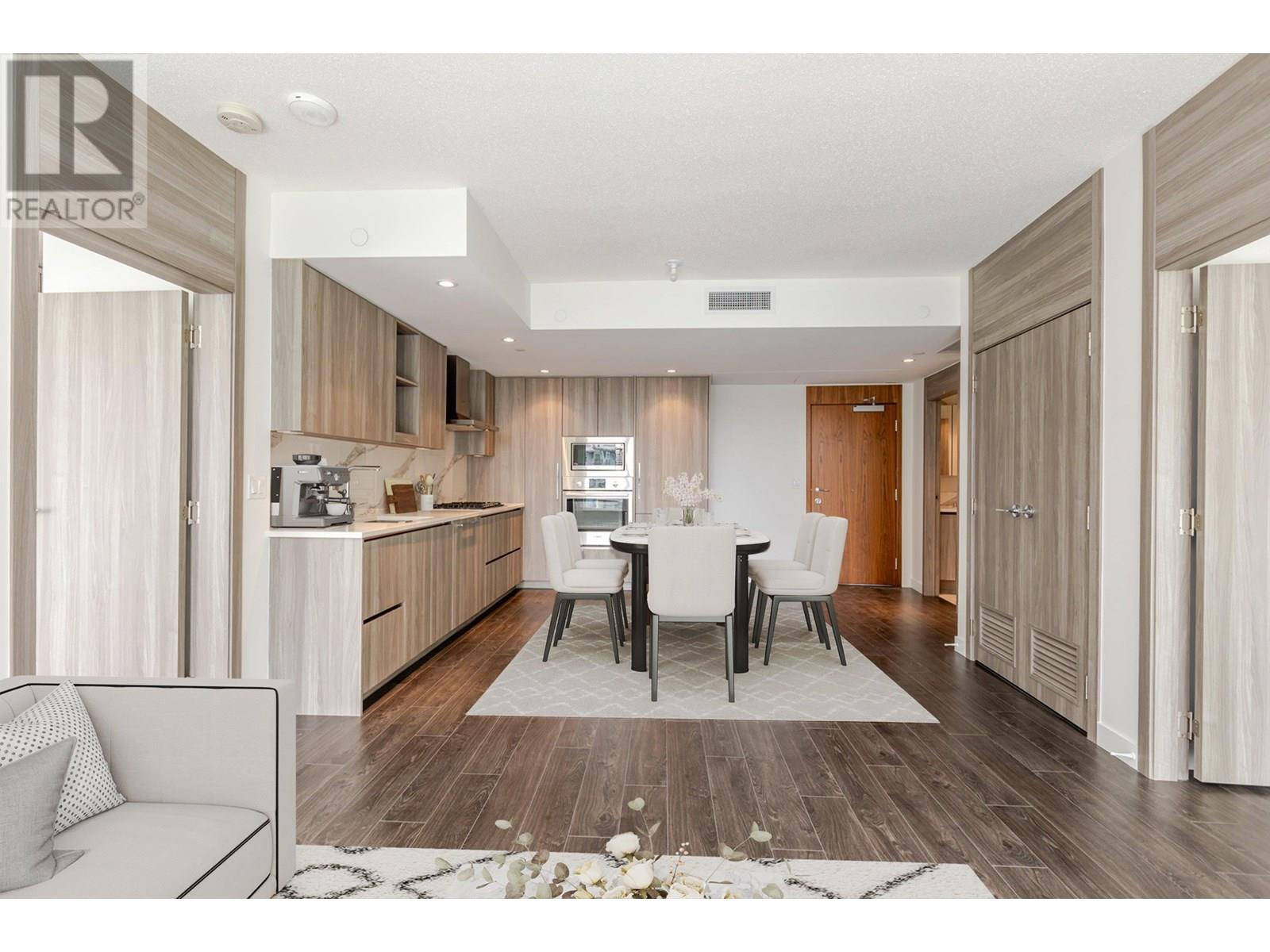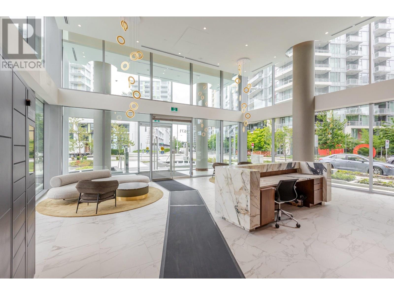 GST included! Brand New 2 Bed, 2 Bath + Den at Picasso by Concord. This bright and functional layout features 2 balconies and upscale finishes throughout. Enjoy a stylish kitchen with custom wood-grain cabinetry, premium Blomberg appliances, soft-close Blum® hardware, and under-cabinet lighting. Spa-inspired bathrooms offer Calacatta porcelain tiles and frameless glass showers. The den, with its own ventilation, is perfect for a home office or guest room. World-class amenities: indoor pool, hot tub, steam room, gym, ping pong & yoga studio, garden courtyard, BBQ area, playground, concierge, and secure package room. Unbeatable location next to Capstan SkyTrain and just minutes to Costco, T&T, Union Square, Yaohan Centre and more. Includes 1 EV parking stall and storage locker. (id:62103)