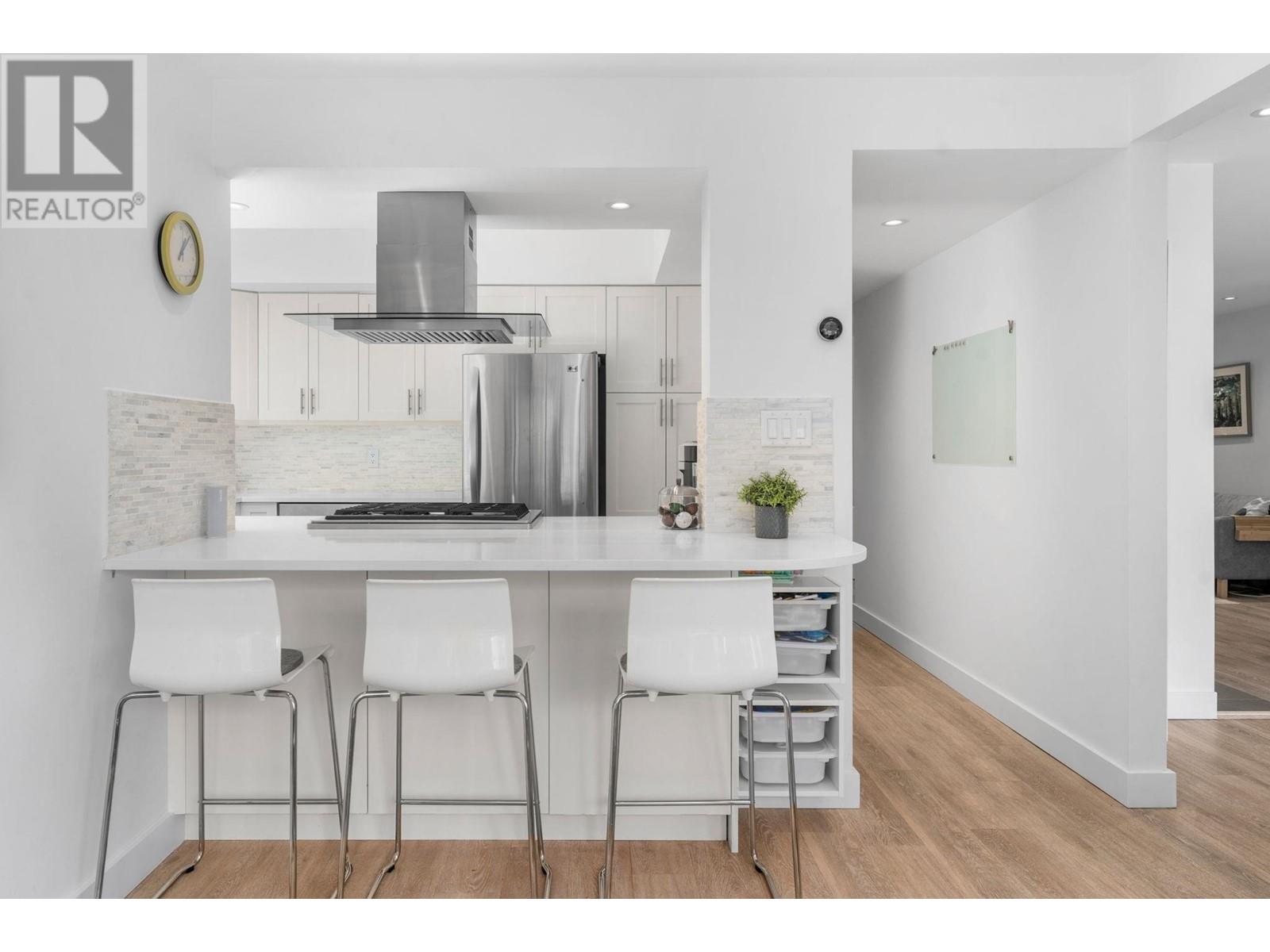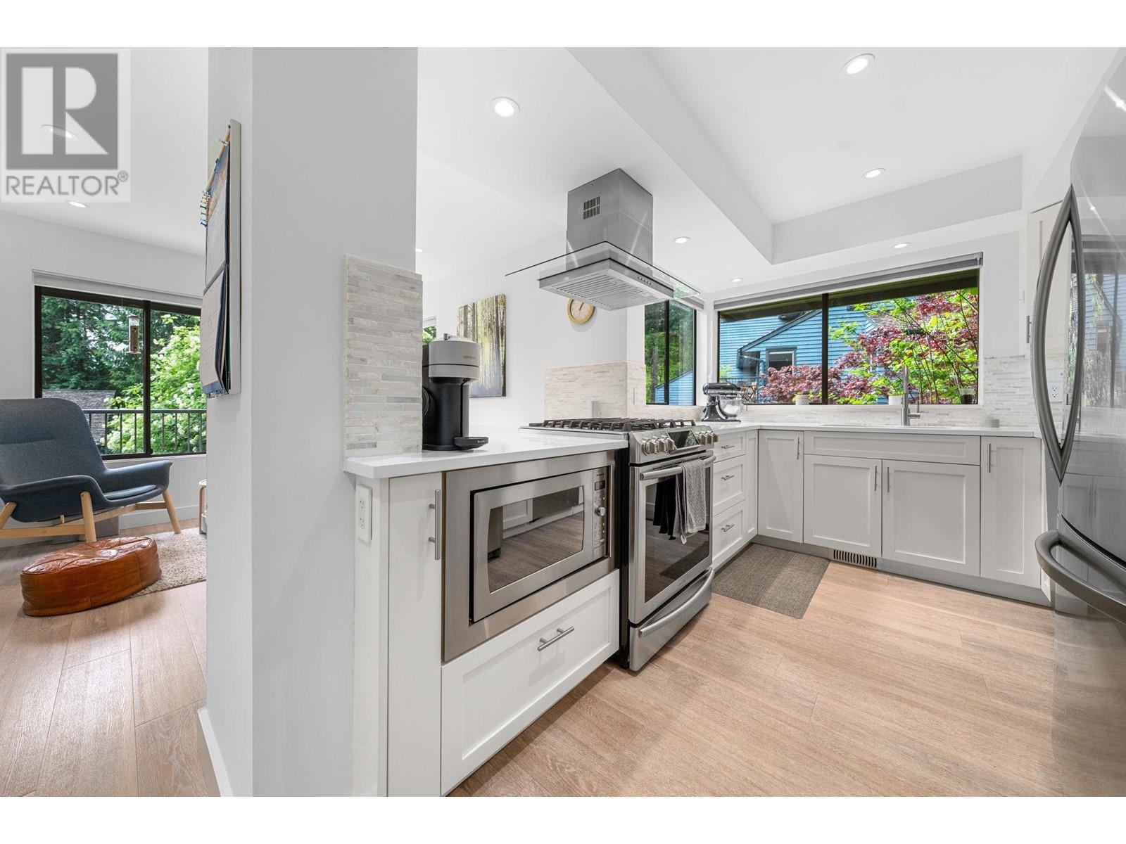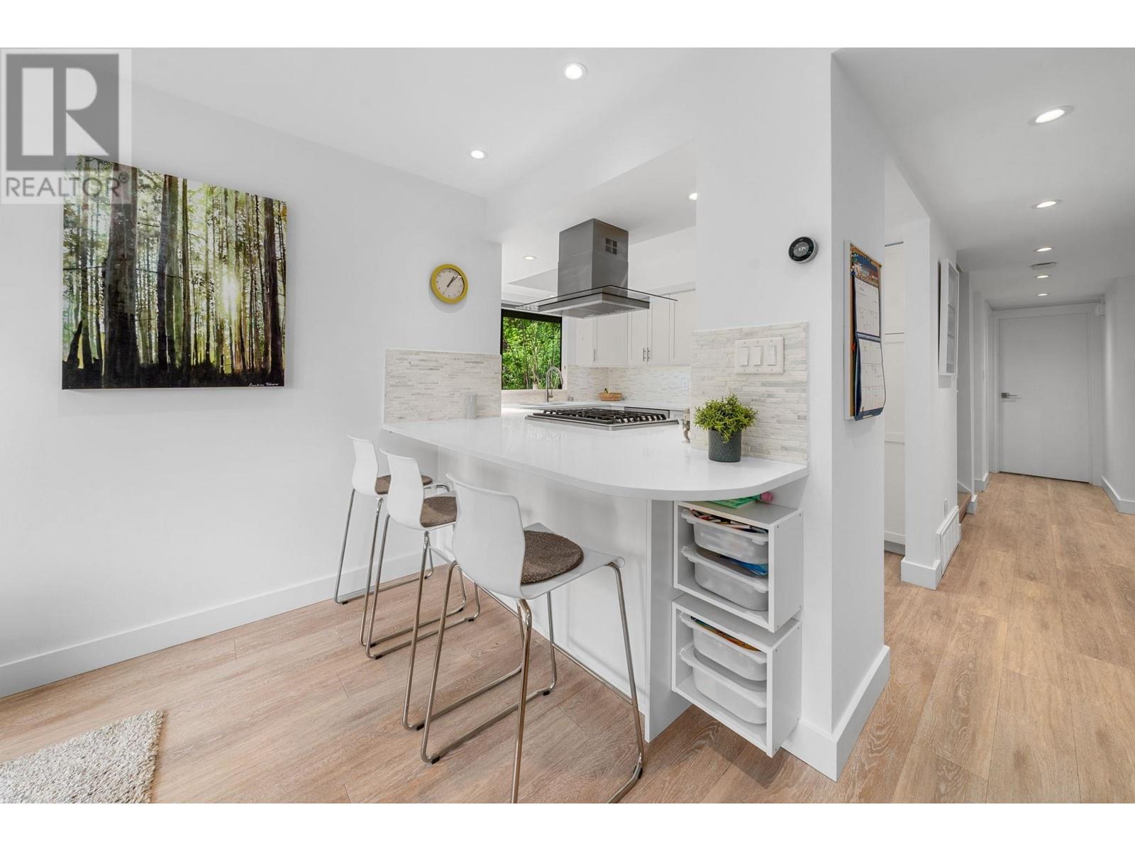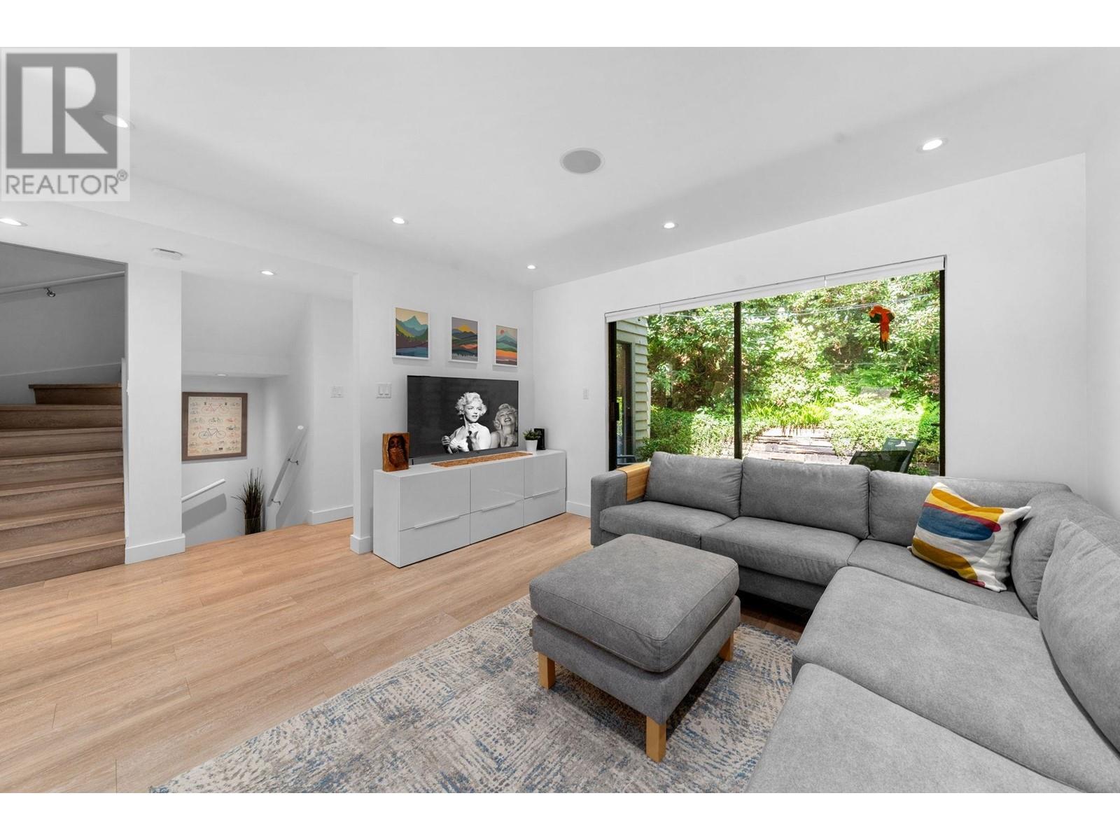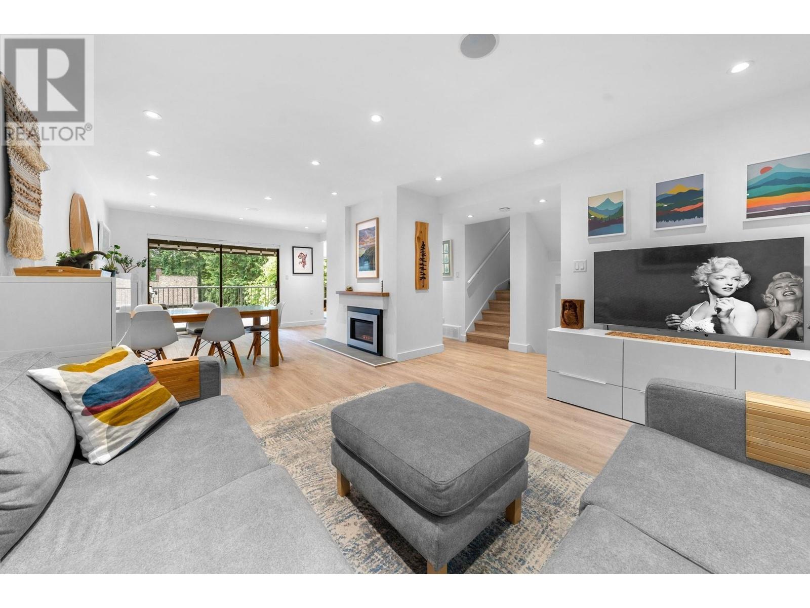 Don’t miss this rare south facing end-unit townhome in Lynn Valley! Located in the family-friendly Laura Lynn community, this beautifully updated 4-bedroom, 4-bathroom Townhome feels just like a single-family home. Tastefully renovated throughout, the main floor features a bright open-concept kitchen, large dining area & cozy living room with gas fireplace–open onto a spacious, partially covered deck perfect for year-round use. Upstairs offers three large bedrooms & primary with ensuite bathroom. On the lower-level you’ll find plenty more storage space, a 4th bedroom, or great office / rec room for the kids! All just minutes from top schools, Lynn Valley Centre, and world class hiking & biking trails! (id:62103)