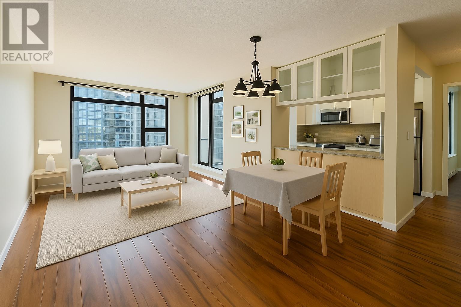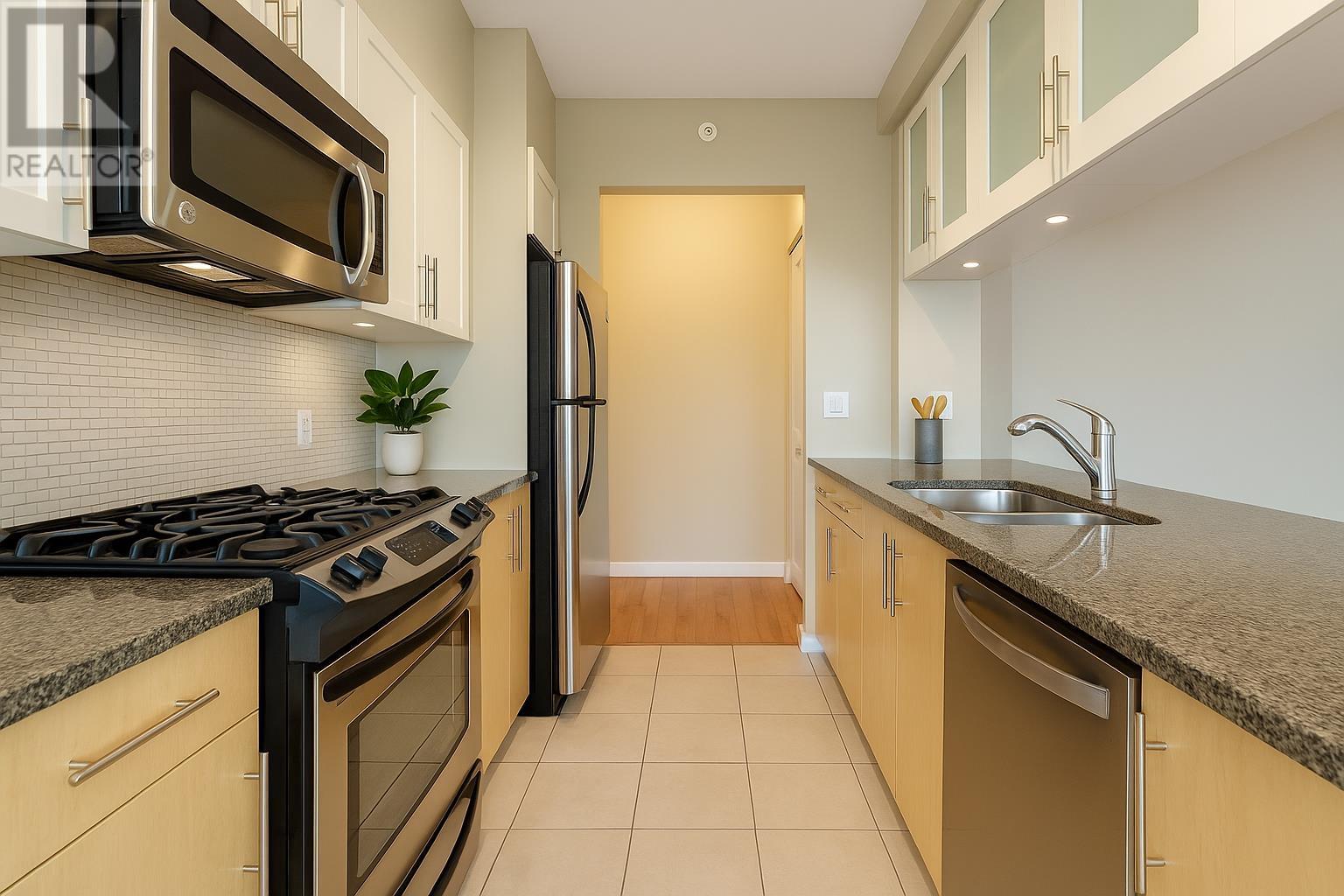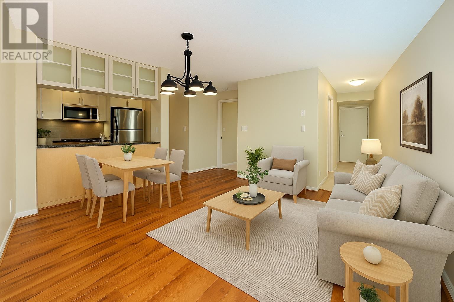 Discover Emporio by Concert Properties, a modern 2-bedroom, 2-bathroom NW corner unit in the heart of Richmond. This 933 sq. ft. home features an open-concept layout, floor-to-ceiling windows, a sleek kitchen with stainless steel appliances, and a private balcony with city views. Move-in ready and well-maintained, it includes one parking stall and a storage locker. Enjoy top-tier amenities like a fitness center and garden spaces. Just steps from Brighouse SkyTrain, Richmond Centre, and top dining options, this is perfect for homeowners or investors. Book your private showing today! “Photos are virtually staged** **Public Open House May 25 Sun 2-4 PM** (id:62103)
