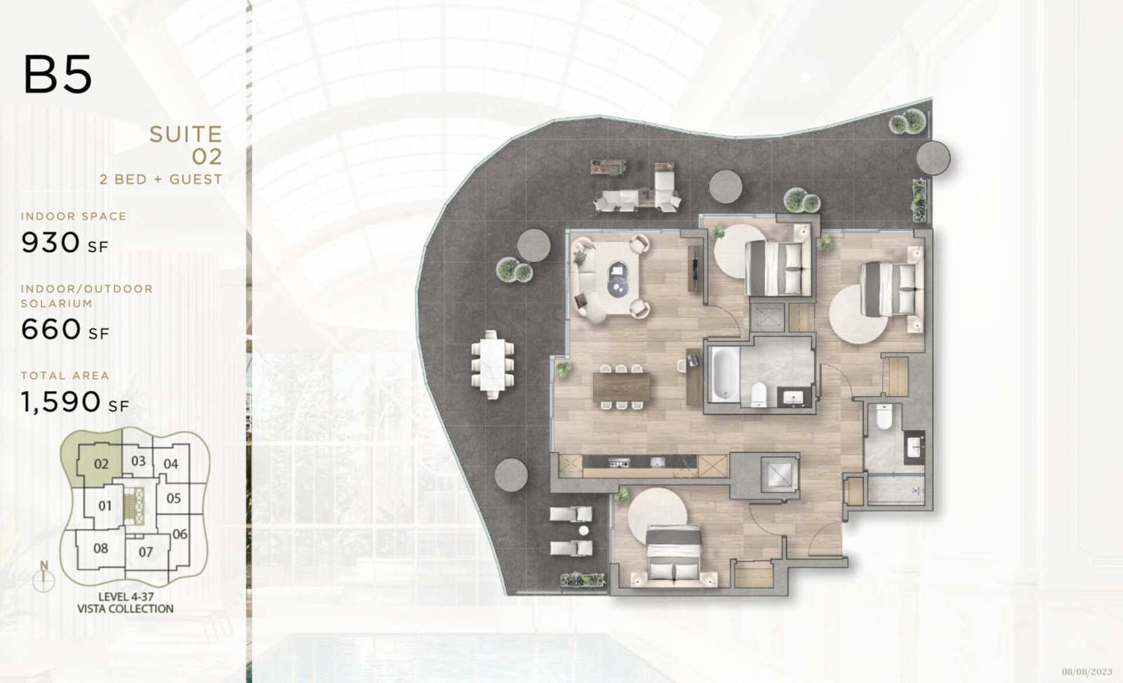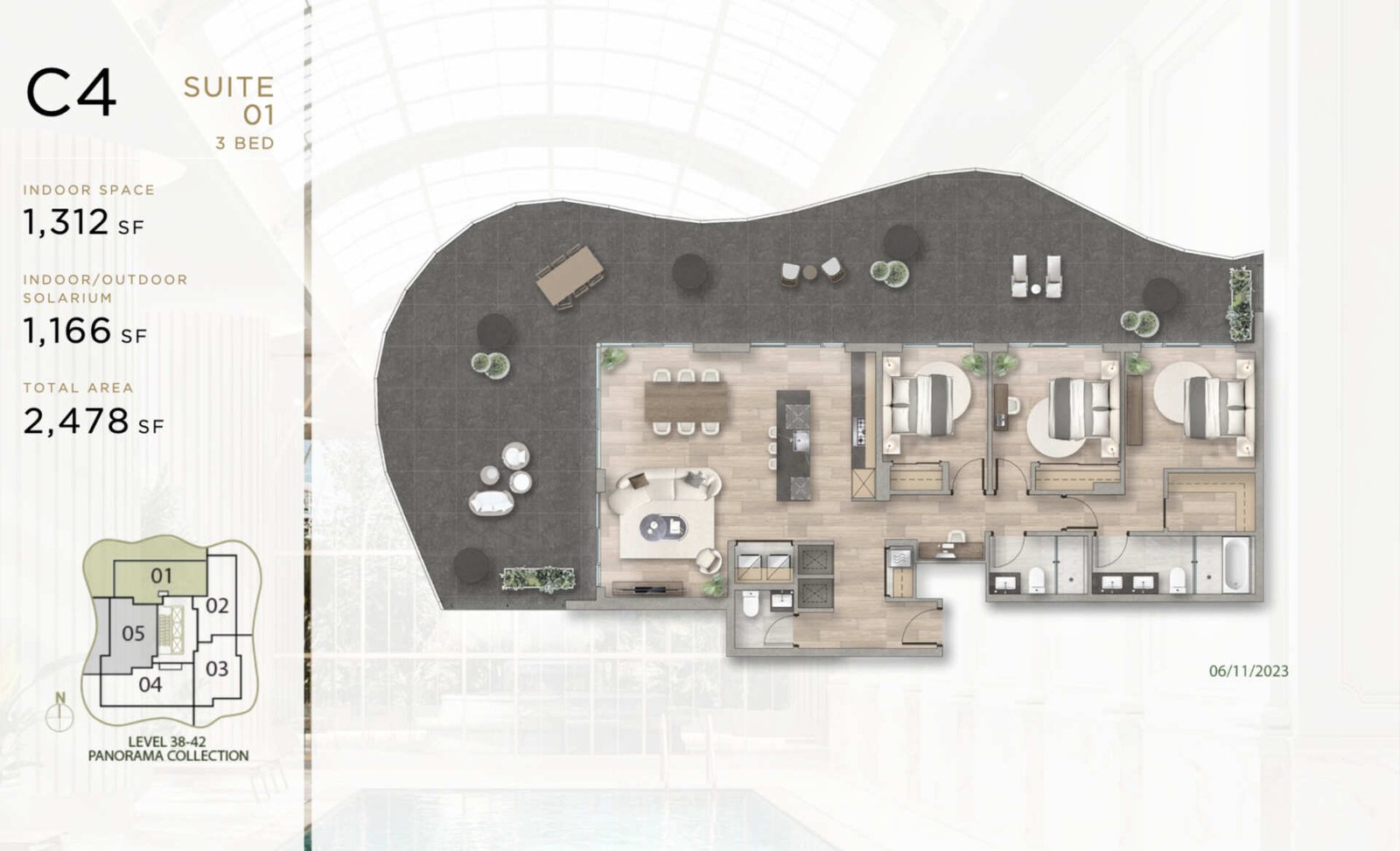 Inspired by the refinement of classic conservatories and the grandeur of beaux-arts architecture, Greenhouse is a living masterpiece that elegantly captures the opulence of royal gardens. The exterior facade boasts sinuous curves and flowing waves, harmoniously reflecting the beauty of nature. Every architectural element pays homage to its outdoor surroundings, embracing the lush greenery of Central Park and the serene shores of Deer Lake. Greenhouse stands as a testament to timeless sophistication and natural harmony.