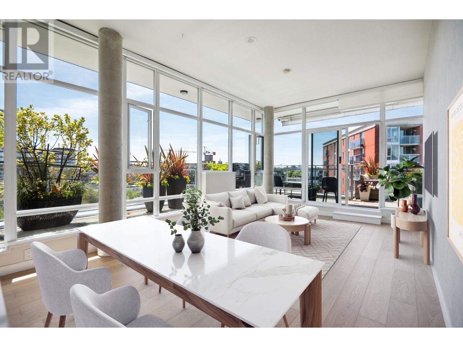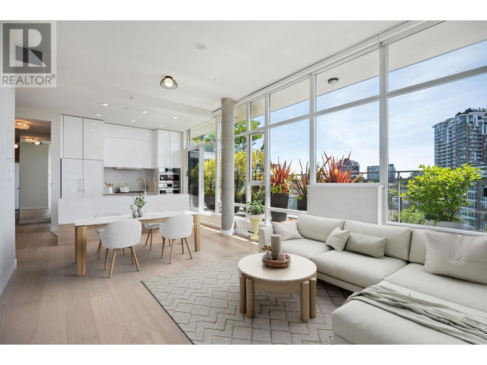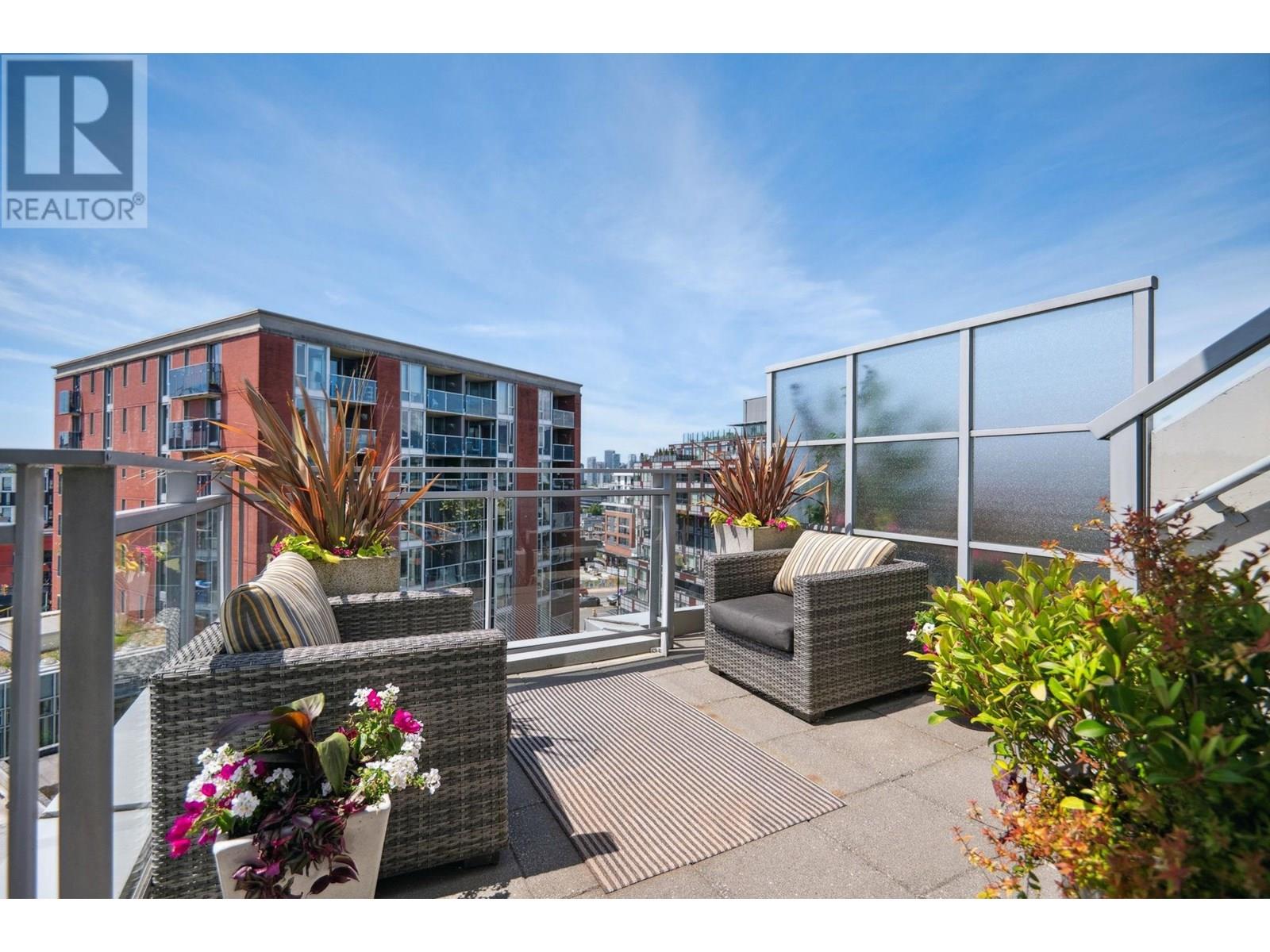 Welcome to The Social. This stunning SW corner Penthouse offers 380 square ft of wrap-around balcony on the main level and a 915 square ft private rooftop garden patio-perfect for outdoor living and entertaining. Inside, enjoy 1250 square ft with overheight ceilings and floor-to-ceiling windows that flood the space with natural light. Fully renovated throughout with high-end appliances, premium countertops, flooring, and custom bedroom upgrades. The spacious primary bedroom can easily be converted to create a third bedroom if desired. Comes with 2 parking, 1 EV-ready 1 regular, a rare massive storage room and 1 locker. Located in the heart of Main Street´s most sought-after neighborhood, this home combines luxury, function, and unbeatable location in one complete package. Showings by Apt only. (id:62103)