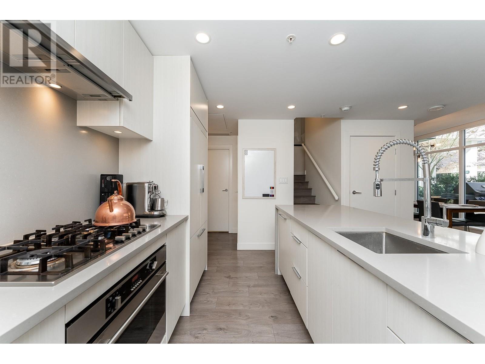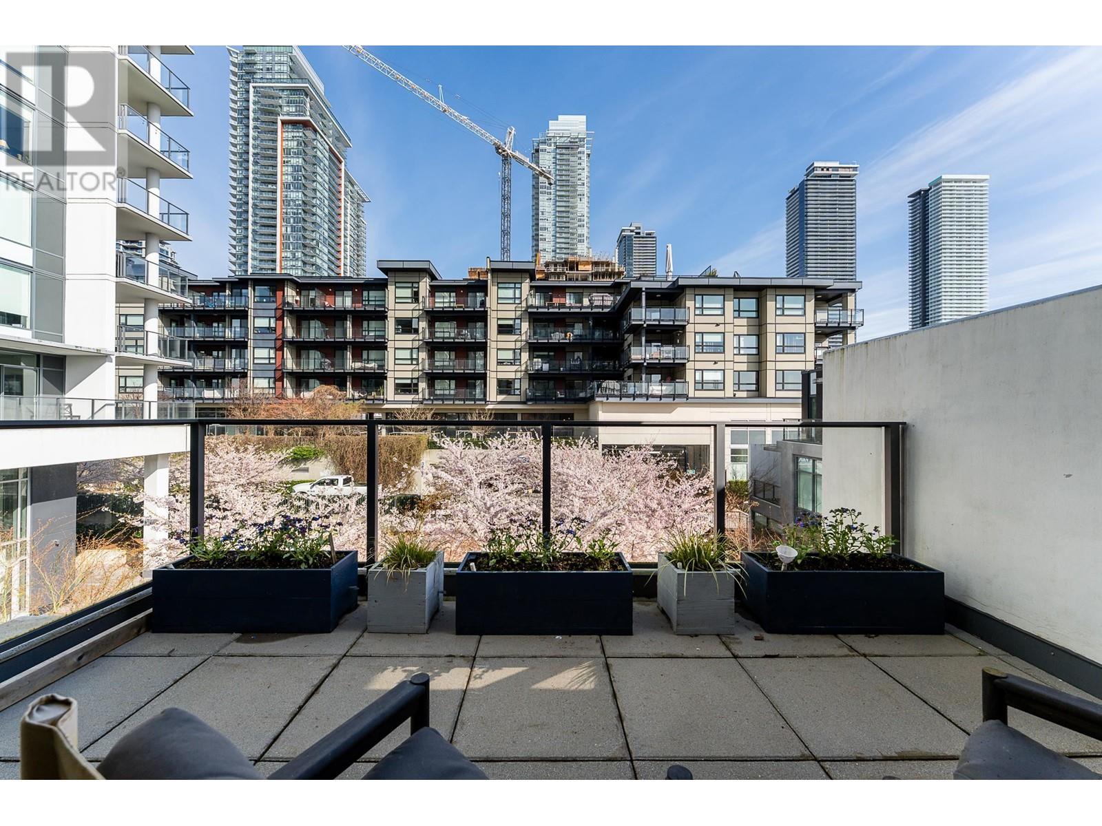 Upscale concrete-townhome living at Juneau by Amacon, in the heart of Brentwood. Perfect for families and commuters. This incredible 3 bed + den, 2.5 bath home offers almost 1,400 sq/ft of living space, and is situated on the quiet side, with a beautiful courtyard view out back. The gourmet kitchen offers a large island and high-end appliances – FisherPaykel Fridge, Bosch D/W, & Fulgor Oven and Gas Cooktop. Entertain on your large, fenced back patio, which leads out to the central courtyard with beautiful cherry blossoms. Two large, separated bedrooms on the 2nd floor, plus patio, and spacious den / office. Primary bedroom with en-suite on the 3rd level with private patio. A quick walk to Brentwood´s shopping, dining and SkyTrain. 2 oversized, side x side parking with outlet + storage locker. (id:62103)